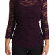 Gorgeous brand new with tags, 100% Authentic Dolce & Gabbana sheer lace long sleeve top has an attached purple camisole underneath. The camisole and outer lace portion both have a back center zipper closure.