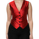 Red Black Button Down Sleeveless Vest Top