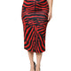 Red Black Zebra Print Polyester Pencil Midi Skirt