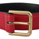 Red Calf Leather Gold Tone Logo Metal Buckle Belt