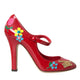 Red Leather Embellished Mary Jane Pumps Heels Shoes