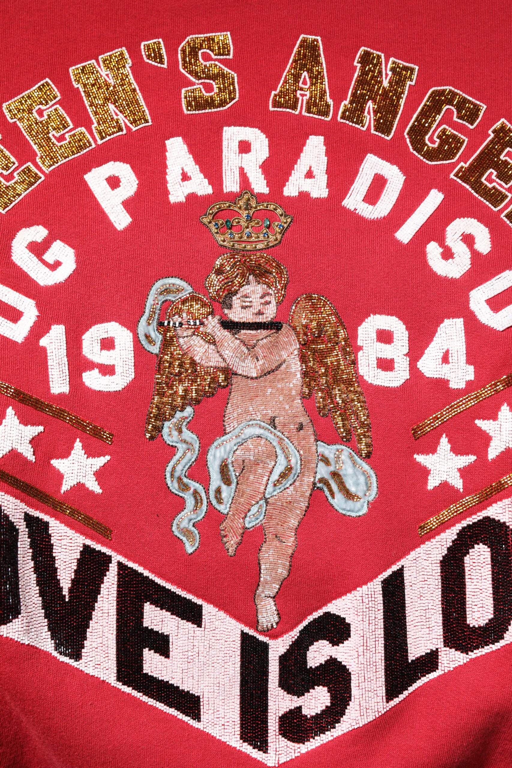 Red Sequin Knit Pullover Sweatshirt Sweater