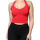 Red Viscose Sleeveless Halter Cropped Tank Top