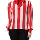 Red White Stripes Ascot Collar Blouse Top