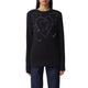Adorn your wardrobe with the sparkle of Love Moschino’s stretch cotton t-shirt. This chic black piece features a dazzling maxi rhinestone heart that captures the light and the attention around. Designed with a comfortable crew neck, long sleeves, and a straight hem, this tee combines everyday comfort with a touch of glamour. Make a statement while embracing casual luxury.