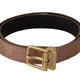 Rose Gold Leather Logo Engraved Metal Buckle Belt