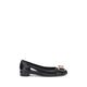 Ferragamo’s Rubber Ballerina combines elegance and practicality with a sleek, modern design. The low block heel ensures comfort, while the side cut-out details lend lightness to the silhouette. The metallic logo bow on the front adds a distinctive touch, complemented by the classic round toe for a versatile and feminine style.