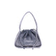 The Ryan small Handbag by Alexander Wang is an accessory with an urban and contemporary style. Featuring a ribbed fabric design, it has a flat top handle and a drawstring closure enriched with ribbons, which add a casual and modern touch. The iconic monogram of the brand printed on the front completes the look with a distinctive sign. Compact but roomy, it is the ideal choice for those looking for functionality without sacrificing character.