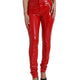 Shiny Red High Waist Skinny Pants