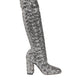 Gorgeous preowned with tags, 100% Authentic Dolce & Gabbana women’s over-the-knee boots. These eye-catching boots are entirely covered in shimmering silver sequins, creating a dazzling statement piece for evening wear or special occasions. Crafted in Italy with premium attention to detail, they feature a block high heel, round toe, and full sequin finish.