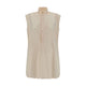 Quira’s cotton Shirt is an elegant and sophisticated garment featuring a sleeveless design and mandarin collar that add a touch of sophistication. The half-bust closure by buttons on the front adds a practical and elegant detail. The vintage effect design and side slits offer a dynamic and modern silhouette, while the monochrome pattern maintains an understated and versatile look. The oversize fit ensures comfort and a contemporary silhouette.