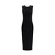 Balmain’s Long Dress is a bold and refined garment made of a twisted knit with openwork that enhances the silhouette. The round neckline is framed by a contrasting ribbed finish, also echoed on the armholes. The contrasting straps are embellished with the distinctive gold metal "Lion Chain" buttons, the distinctive symbol of the maison. Sleeveless and with a long, fitted fit, this dress combines structured elegance and contemporary sensuality.
