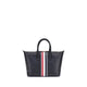 Hammered leather Duffle Small Handbag by Thom Browne features a compact, structured design. Featuring two tubular top handles and a top closure with a double-slider zipper, it provides practicality and security. The iconic vertical colored bands on the front and back add a distinctive and recognizable touch. An adjustable and removable shoulder strap for dual modes of portability and a single internal compartment, ideal for essential organization, complete the model. A stylish and functional accessory, perfect for urban and sophisticated style.