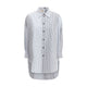 Oversize shirt from Marni, made of organic cotton with an original patchwork of contrasting striped panels. The distinctive design features an asymmetrical longer back hem, long sleeves and an applique breast pocket. Hand-embroidered on the left shoulder is the Marni Symbol, the brand’s iconic detail. The front closure is buttoned, while the back features a V cut finished with a button. A contemporary and sophisticated garment, perfect for looks with a strong character.