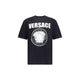 Cotton T-Shirt by Versace featuring a ribbed crew neck and iconic contrasting monogram on the front, embellished with a Medusa maxi head. A distinctive garment that combines comfort and bold style.