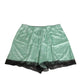 Gorgeous brand new, 100% Authentic Dolce & Gabbana water green satin shorts are designed with delicate black lace trim for a luxurious finish. Perfect for loungewear or as a chic statement underlayer.