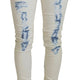 White Blue Cotton Skinny Women Tattered Denim Jeans