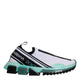Gorgeous brand new with tags, 100% Authentic Dolce & Gabbana Black and blue ‘Sorrento’ sneakers. Decorated with a logo print in white and black. Fabric pull strap sewn-in at the back. Multicolor decorative rubber sole.