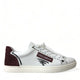 White Bordeaux Leather Logo Low Top Sneakers Shoes