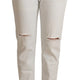 White Cotton Distressed Mid Waist Skinny Denim Jeans