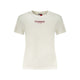 Elevate your everyday style with a touch of preppy sophistication from TOMMY HILFIGER. This short-sleeved, crew neck t-shirt is a testament to casual chic, featuring a fusion of bold print and delicate embroidery that showcases the iconic logo. Crafted from 100% regenerative cotton, it’s not only fashion-forward but also eco-conscious. Proudly made in Bangladesh, this crisp, Bianco tee is a wardrobe essential for those who dare to stand out.