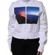 White Graphic Print Cotton Long Sleeves Full Zip Bomber Jacket