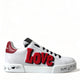 Gorgeous brand new with tags, 100% Authentic Dolce & Gabbana white Portofino sneakers. Crafted from matte smooth leather, this piece features a red heel tab and a red LOVE patch with the brand’s logo on the tongue.