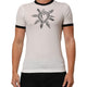 T-shirt blends classic style with bold, artistic detail. Crafted from soft white cotton, it features a timeless crew neck and a comfortable regular fit. The standout Sacred Heart motif on the front adds a striking, expressive touch, making it perfect for adding personality to casual looks.