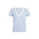 The Morgan De Toi 241-DINA women’s short-sleeve t-shirt features a timeless horizontal stripe pattern and a contrasting V-neckline for a touch of casual elegance. Crafted from a premium blend of 60% viscose, 32% polyester, 6% elastane/lycra, 1% metallic fiber, and 1% polyamide, this top ensures comfort, stretch, and a subtle sheen. The short sleeves and relaxed fit make it an ideal choice for spring and summer, perfect for everyday wear, leisure activities, or informal outings. Distinctive shoulder details add a unique and stylish finish, making this t-shirt a must-have for women seeking both practicality and refined style.