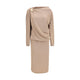 Wool long Dress by Fabiana Filippi is a garment that combines elegance and understatement with impeccable attention to detail. Its clean line is enhanced by a discreet but striking gold button on the right shoulder, which adds a refined accent. The slightly marked waist draws a feminine silhouette without sacrificing comfort, while the ribbed cuffs lend a contemporary and functional note. Ideal for the cold seasons, this is a dress designed for those seeking style and quality in one.