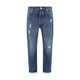Blue Cotton Straight-Leg Jeans