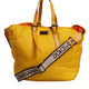 Yellow Orange Nylon Logo Plaque Hand Shoulder Tote Bag